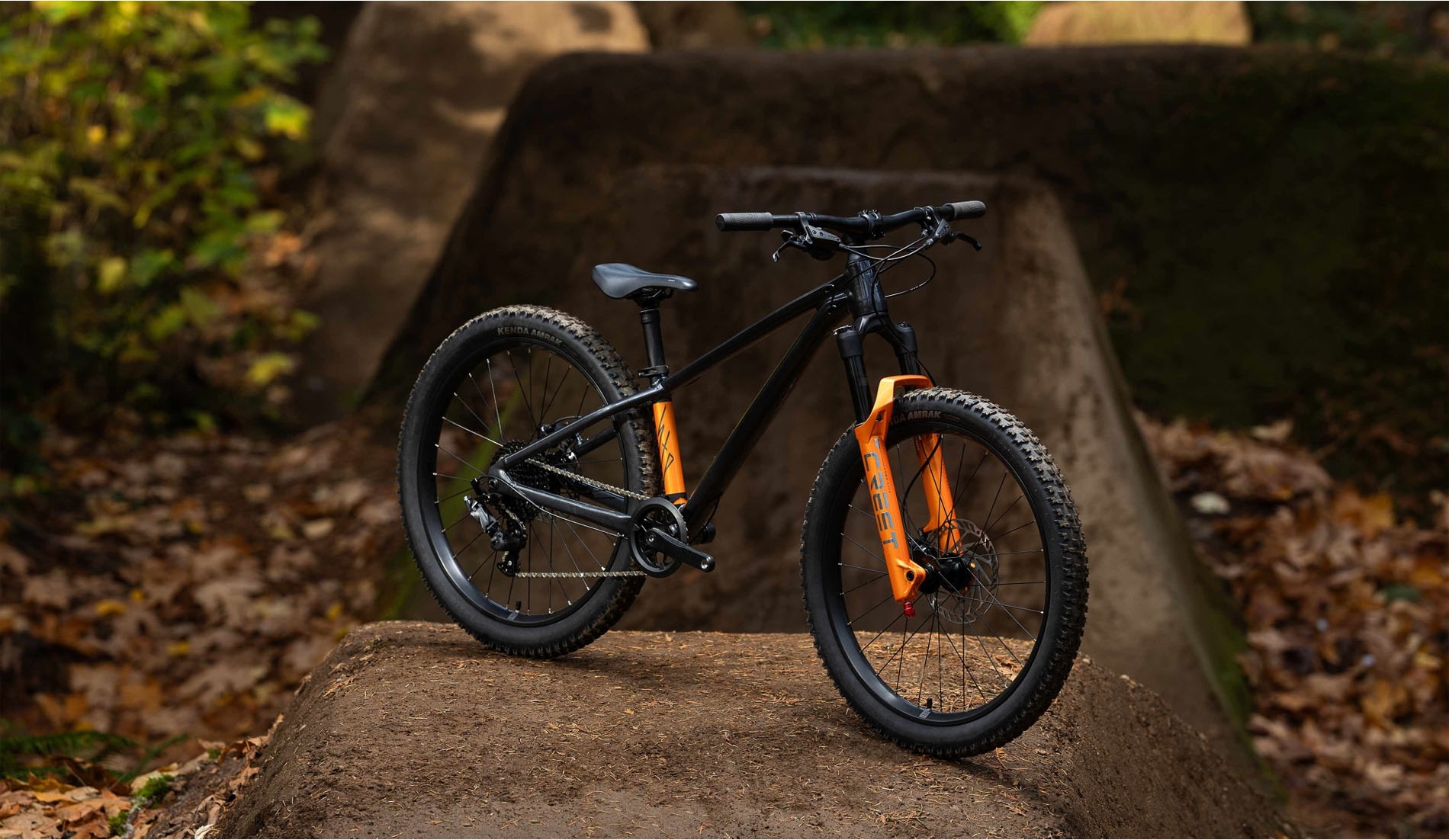 Widelec amortyzowany Crest TR Comp Lite o skoku 100 mm, siodełko Grit Core Lite, kierownica o mniejszej średnicy i hydrauliczne hamulce z lżejszą modulacją, sprawiają, że STP 24 zapewnia płynną, kontrolowaną jazdę, pomagając młodym riderom skupić się na rozwijaniu umiejętności i zdobywaniu pewności siebie.