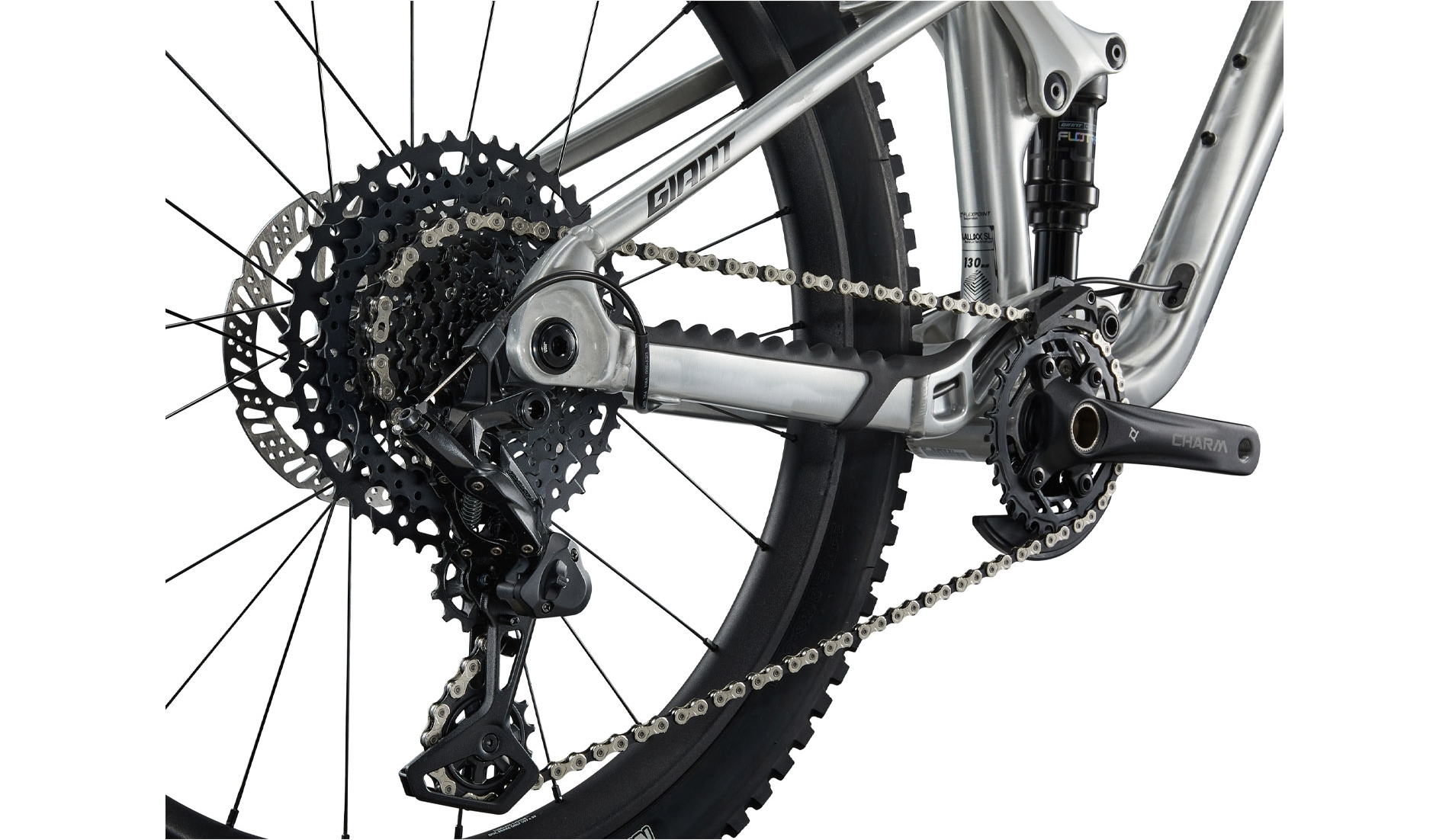 Tylne zawieszenie FlexPoint z amortyzatorem Giant Crest FloTrac Lite zapewnia płynny skok 135 mm dostosowany specjalnie dla lżejszych rowerzystów. Z przodu widelec Giant Crest SL FloTune Lite o skoku 140 mm radzi sobie z kamieniami, korzeniami i koleinami. Zarówno przednie, jak i tylne zawieszenie mają minimalną wymaganą siłę, zapewniając młodym rowerzystom płynną kontrolę i pewność na technicznych szlakach.