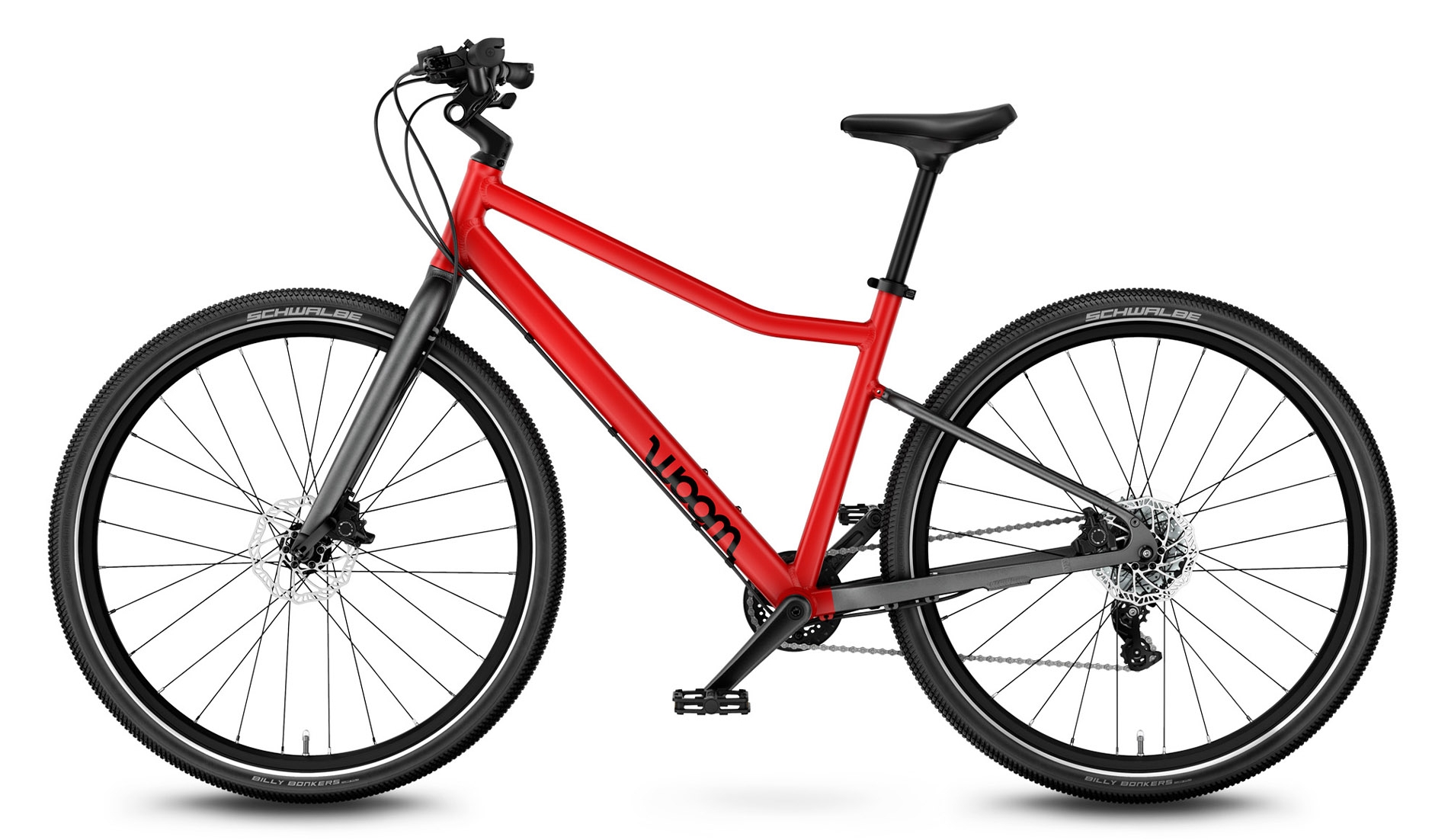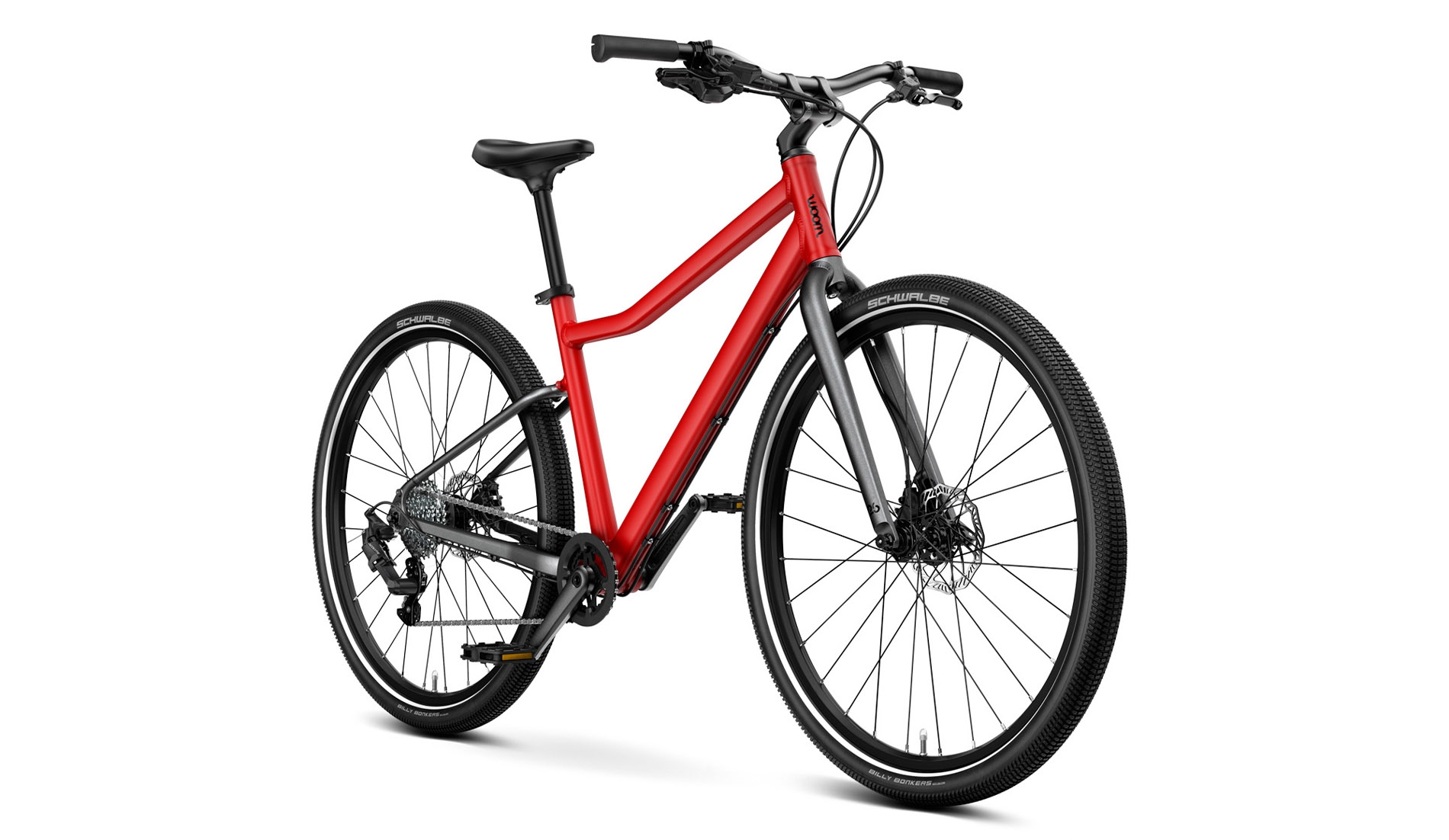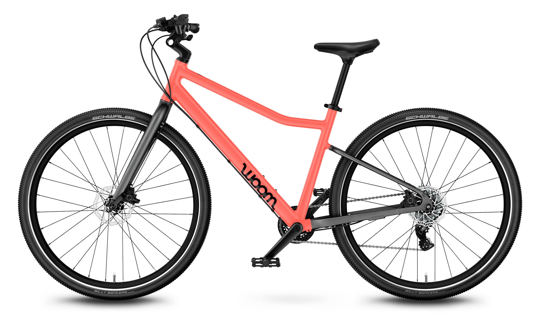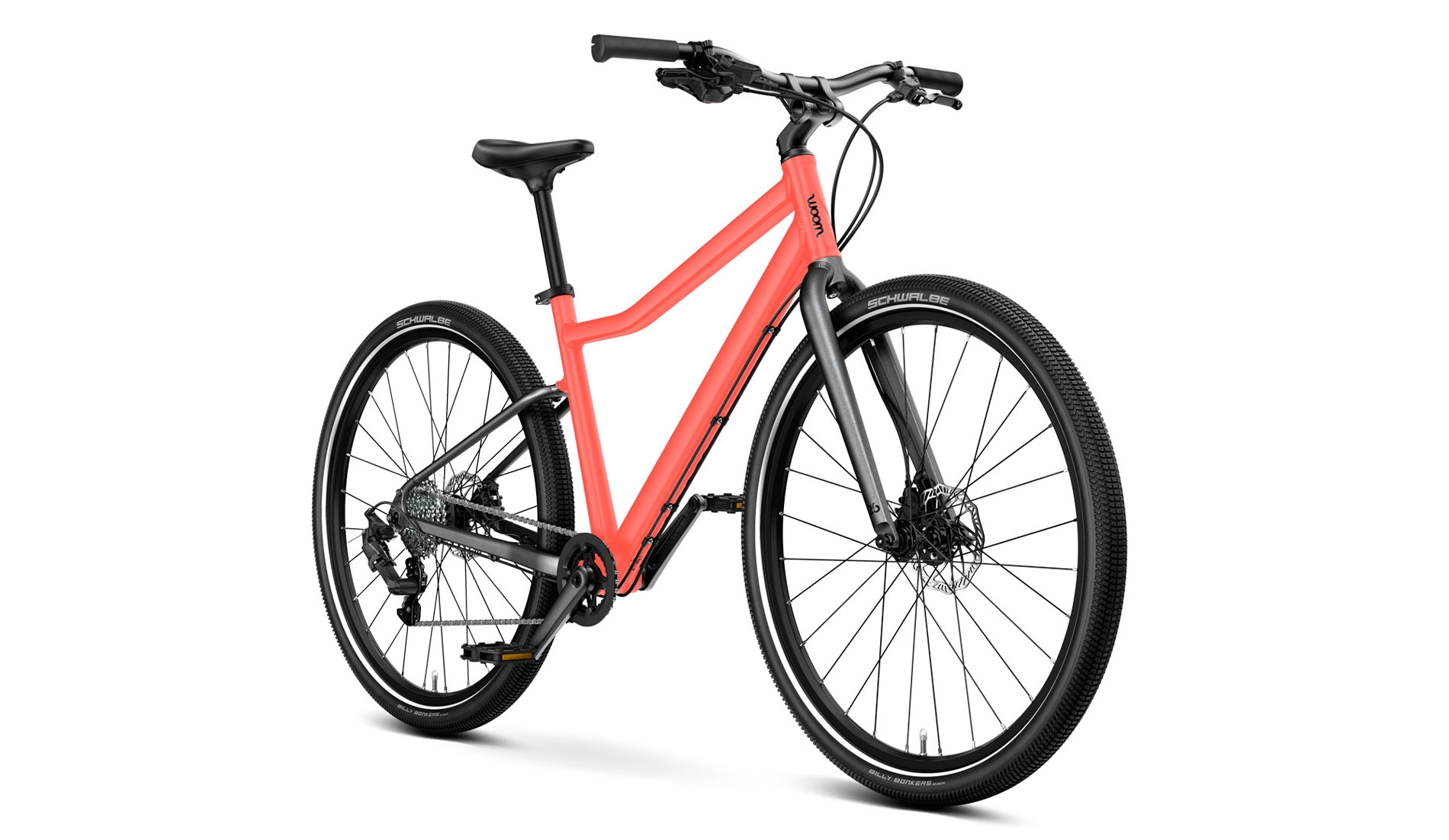 Geometria ramy jest starannie dopasowana do wieku i rozmiaru rowerzysty woom EXPLORE, zapewniając lekko pochyloną pozycję dla maksymalnego komfortu i uśmiechu przez cały czas jazdy.