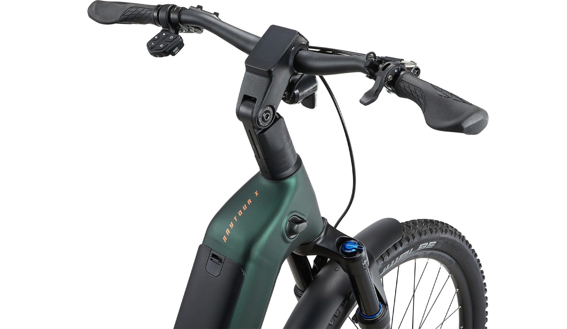 AnyTour X E+ to nastawiony na przygodę rower elektryczny z zawieszeniem i szerszymi oponami zapewniającymi lepszą przyczepność oraz lepsze prowadzenie w mieszanym terenie i na miękkich nawierzchniach. Posiada 27,5-calowe koła, które wykorzystują niską konstrukcję ramy i prześwit dla opon o dużej objętości. Ta nowa konstrukcja ramy ma również opływowy profil, który sprawia, że wygląda spójne, a nie jak zespół spawanych rur. Nowe silnik SyncDrive zapewniają płynną, natychmiastową moc, aby pomóc rowerzystom wspinać się na strome wzniesienia i zwiększyć ich możliwości jazdy po szlakach. Wewnętrzne prowadzenie przewodów (przez mostek i stery) dopełnia wyjątkowy wygląd i styl tego roweru.