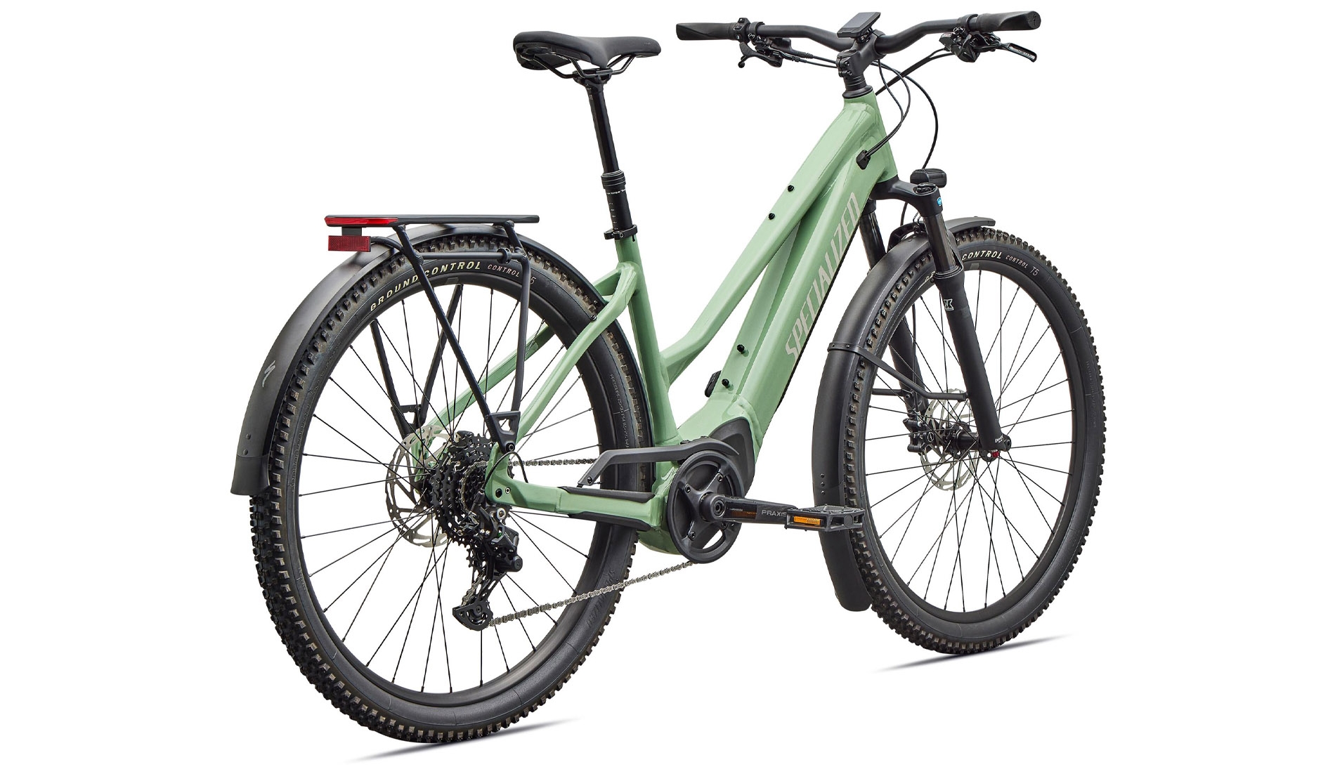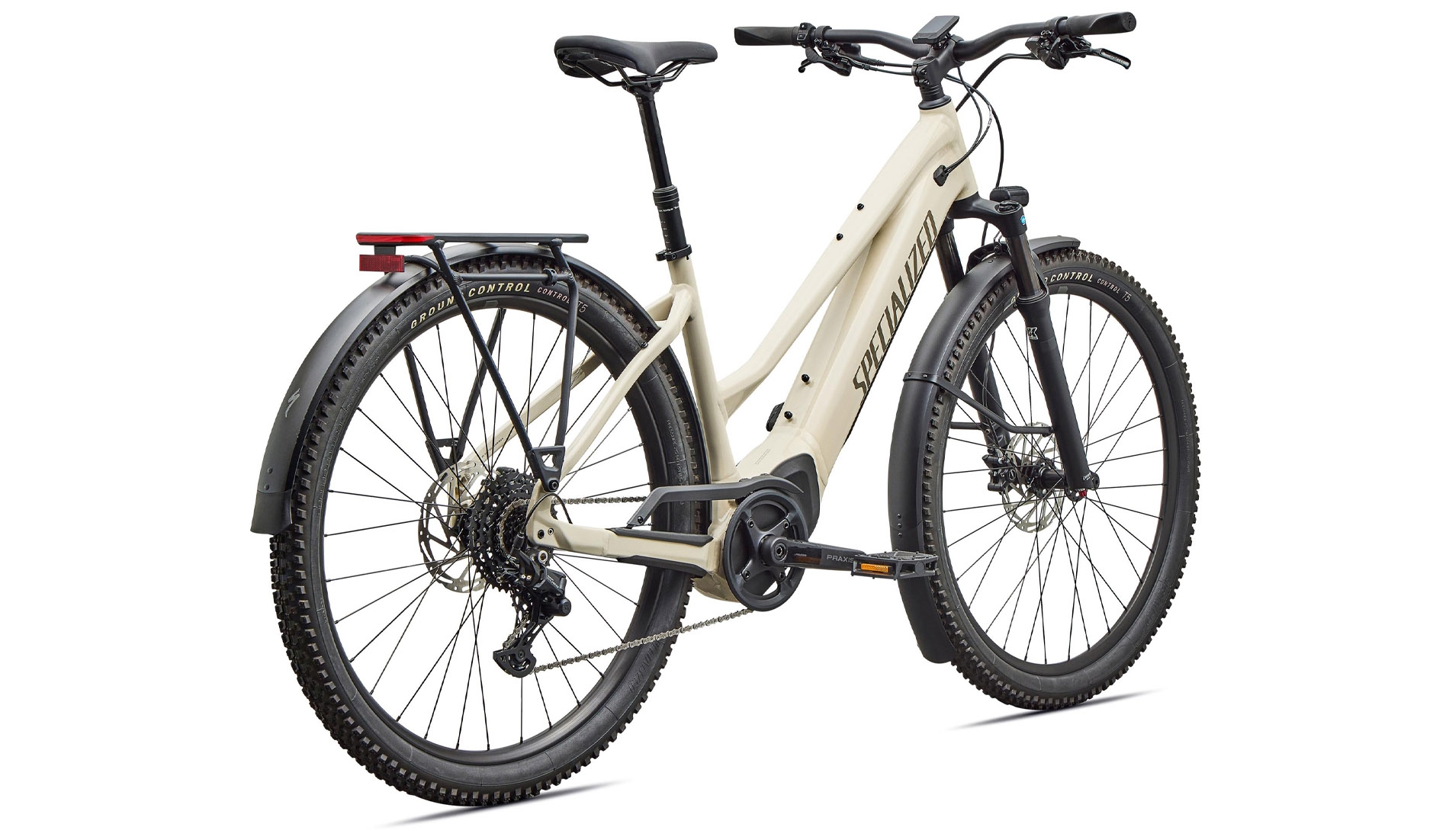 Frame | E5 Aluminum, mid-drive motor, fully integrated & lockable downtube battery, internal cable routing, wheel lock mount, and front rack compatible |
