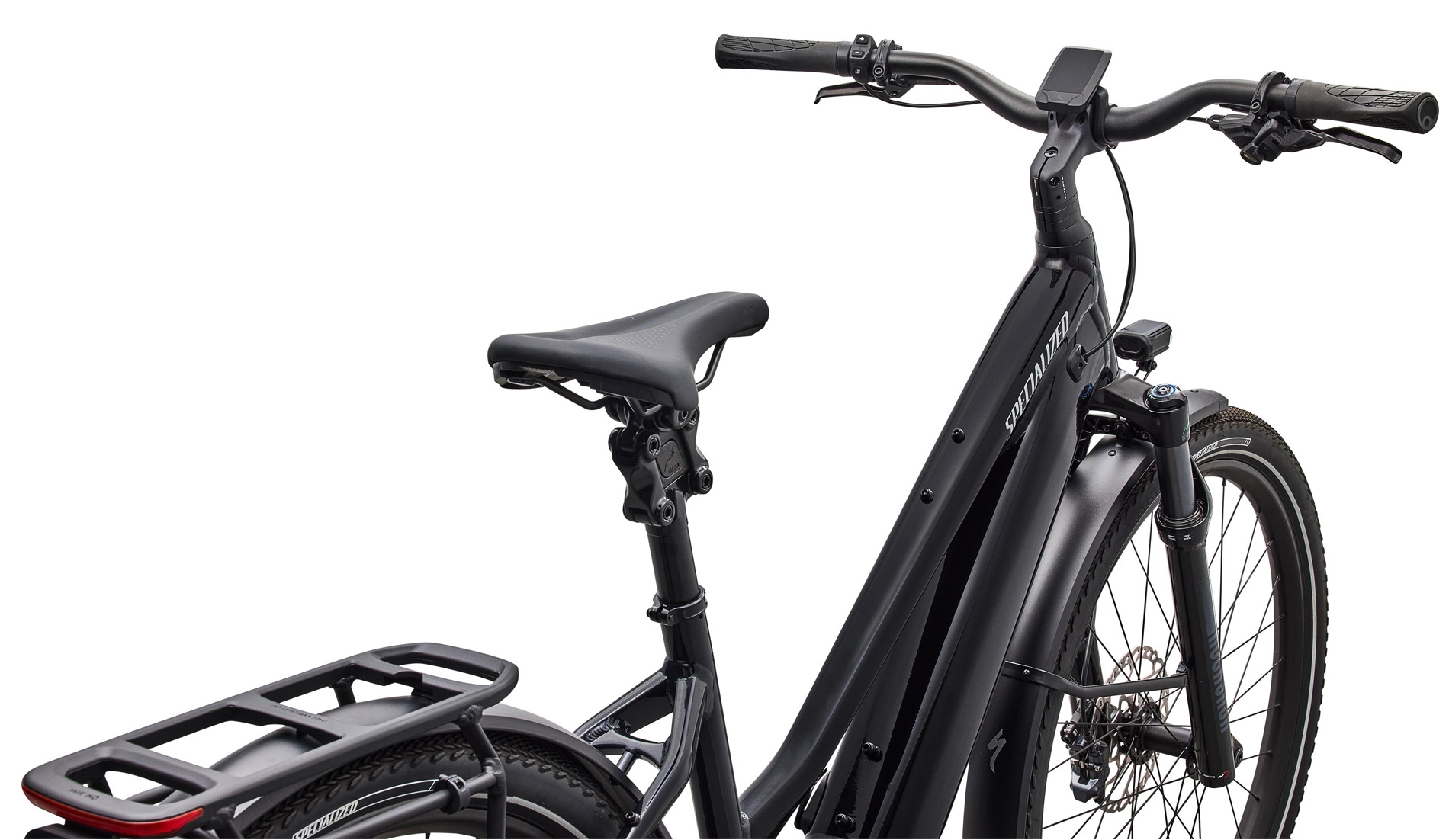 Frame | E5 Aluminum, mid-drive motor, fully integrated & lockable downtube battery, internal cable routing, wheel lock mount, and front rack compatible |