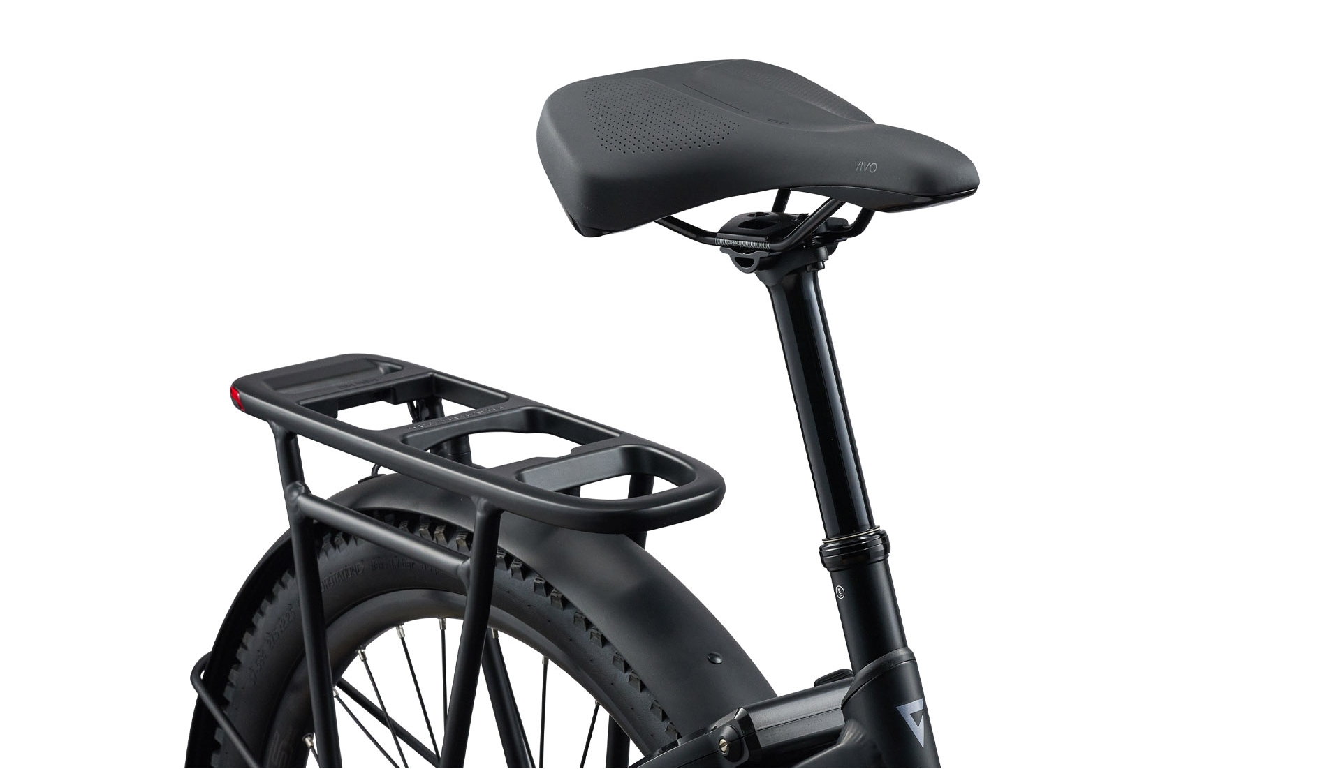 Zaprojektowany, by zachować kontrolę nawet na nieprzewidywalnych nawierzchniach – szerokie, 27,5-calowe opony ułatwiają prowadzenie, podczas gdy widelec o większym skoku oraz amortyzowana sztyca regulowana pomagają pochłaniać silne uderzenia. Od miejskich krawężników po przeszkody na szlaku – system zapewnia Ci pewną kontrolę w zróżnicowanym terenie. Efektem jest jazda, która pozwala utrzymać tempo i płynnie pokonywać nierówności bez chwili wahania.