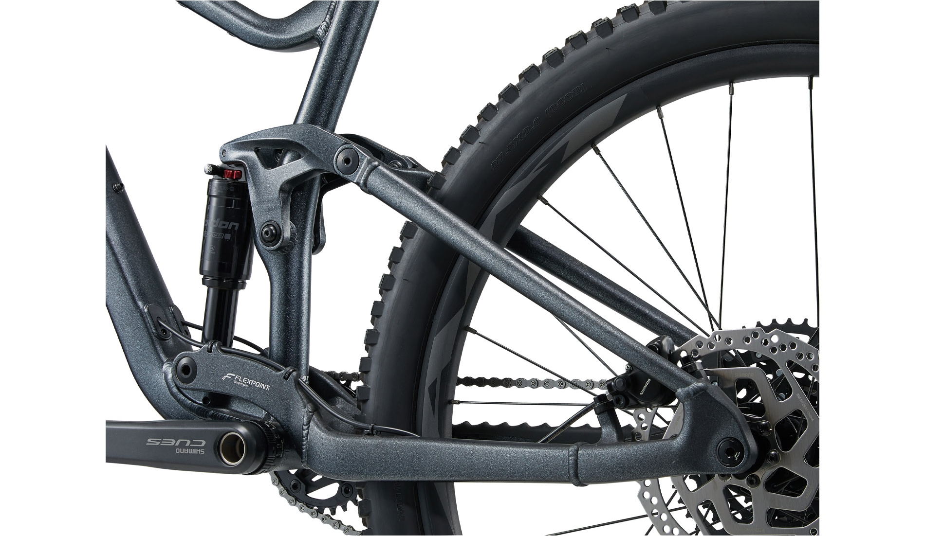 Zawieszenie FlexPoint pomaga rowerzystom pokonywać trudny teren i poprawiać umiejętności jazdy po szlakach. Dzięki skokowi tylnego koła 125 mm i 140 mm z przodu jest to wszechstronny rower do jazdy w zróżnicowanym terenie.