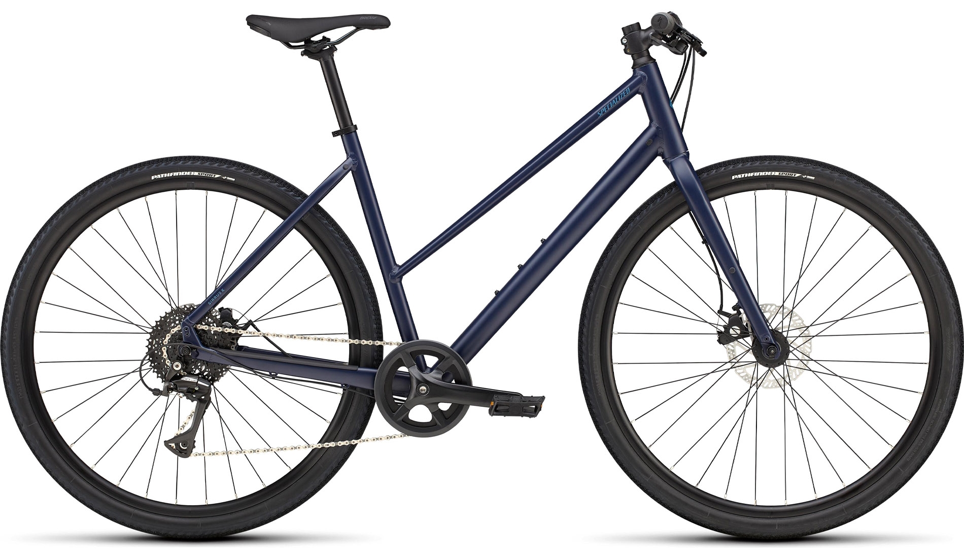 Float over rough terrain with fast rolling Specialized Pathfinder 42c tires featuring proprietary Gripton rubber compound.