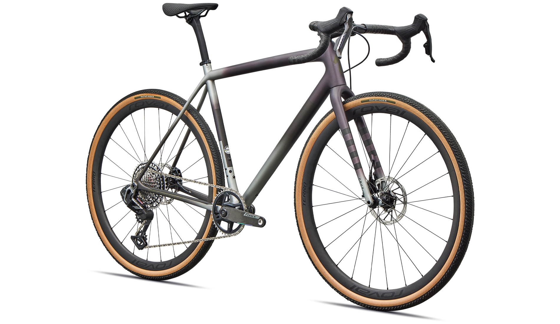 Crux Pro został wyposażony w zupełnie nową grupę SRAM Force XPLR AXS zapewniającą łatwe hamowanie, niższą masę, 13-rzędowy napęd o szerokim zakresie przełożeń, lekkie i wytrzymałe koła Roval Terra CL Disc oraz opony Pathfinder Pro 700 x 40 mm 2Bliss Ready, które sprawdzają się w trudnym terenie.