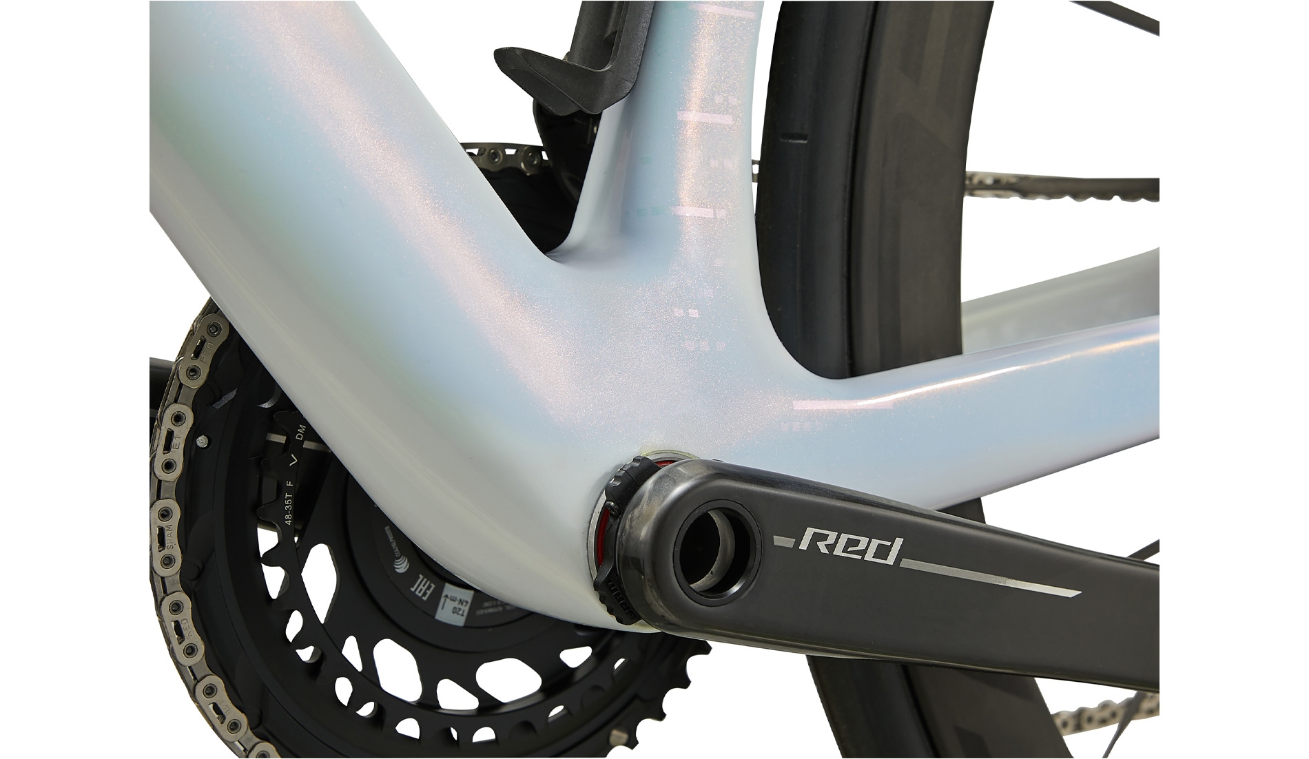 Obniżone rury górne tylnego trójkąta zwiększają pionową elastyczność ramy, co skutecznie wygładza wibracje pochodzące z nawierzchni i poprawia efektywność aerodynamiczną. Dzięki temu rower zachowuje stabilność przy dużych prędkościach, nawet gdy droga staje się nierówna. Z prześwitem pozwalającym na montaż opon o szerokości do 32 mm, EnviLiv Advanced SL zapewnia dodatkową pewność na zmiennych nawierzchniach, nie tracąc przy tym nic ze swojej precyzji, szybkości ani czysto wyścigowego charakteru.